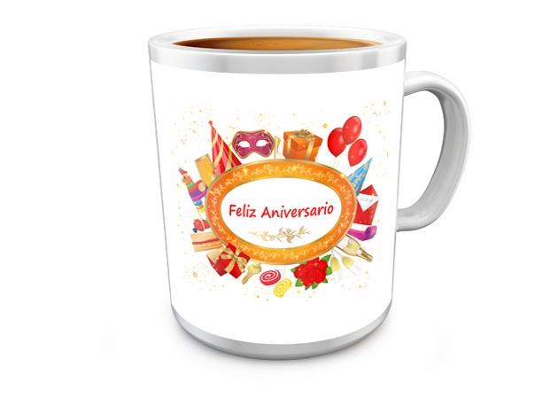 Taza de cerámica con diseño exclusivo “Feliz aniversario”. Incorporala al desayuno o merienda que mas te guste!
